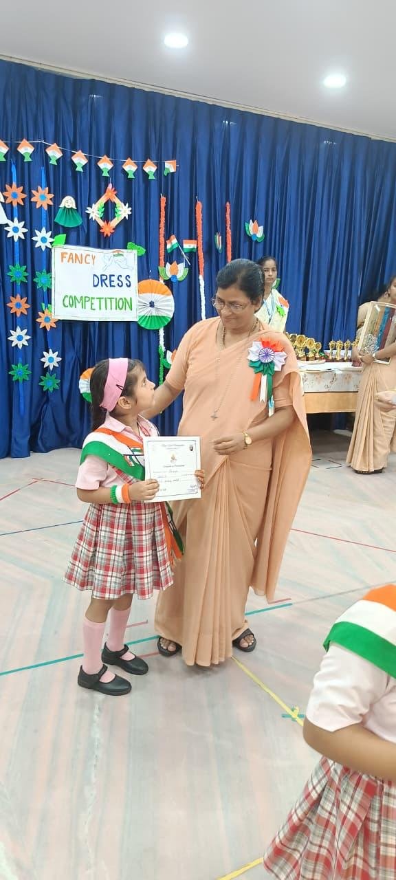 Competition on Independence Day 2025 2025-08-14 Nursery- Fancy dress LKG - Patriotic rhymes competition UKG - English & Hindi spelling contest Prize distribution